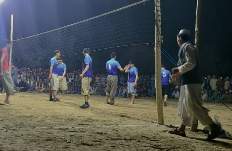 Players from Qari Mola celebrate after winning the Kunduz District Volleyball Championship in Qala-e-Zal on Monday night. By Sara Amiri KUNDUZ: The Qari Mola volleyball team claimed victory in...