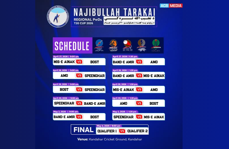 The tournament will begin on April 27 and continue until May 4 at the Kandahar Cricket Stadium, featuring selected teams from five regional zones.